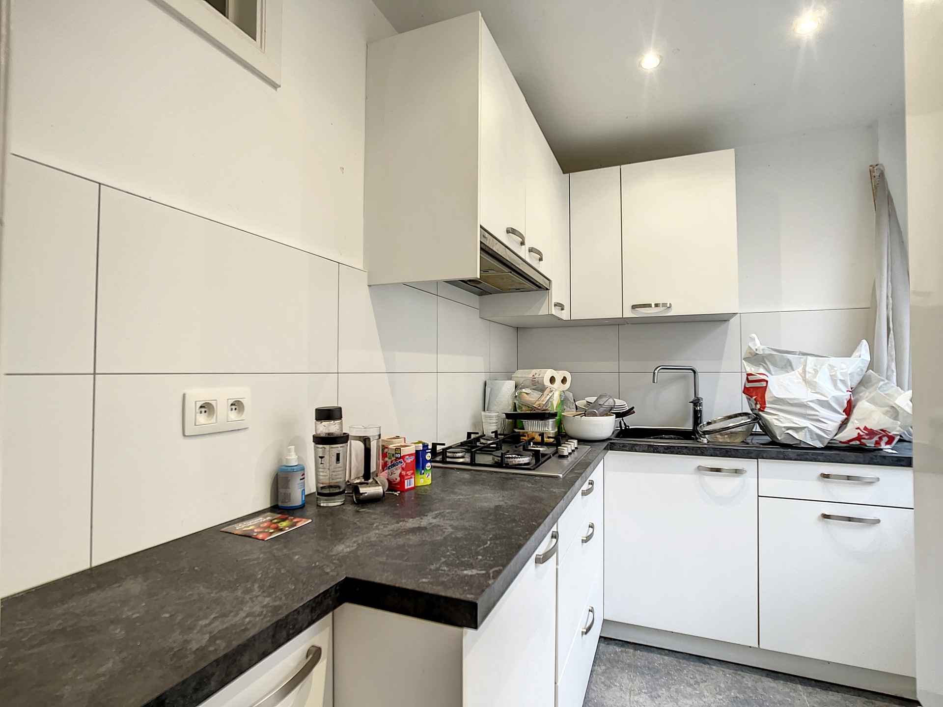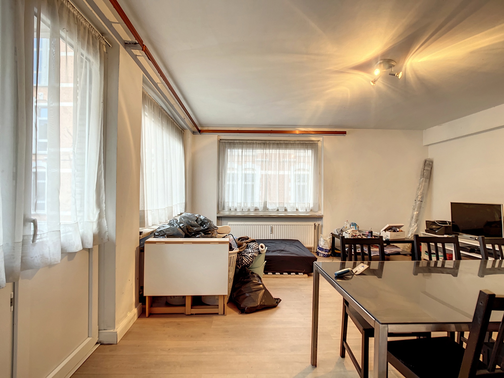 Celui-ci ce compose de: un hall d'entrée de +- 4,2m2, une lumineuse pièce de vie de +-26m2, une cuisine semi-équipée de +-6m2, une salle de bain du +-3m2 ainsi qu'un WC séparé.