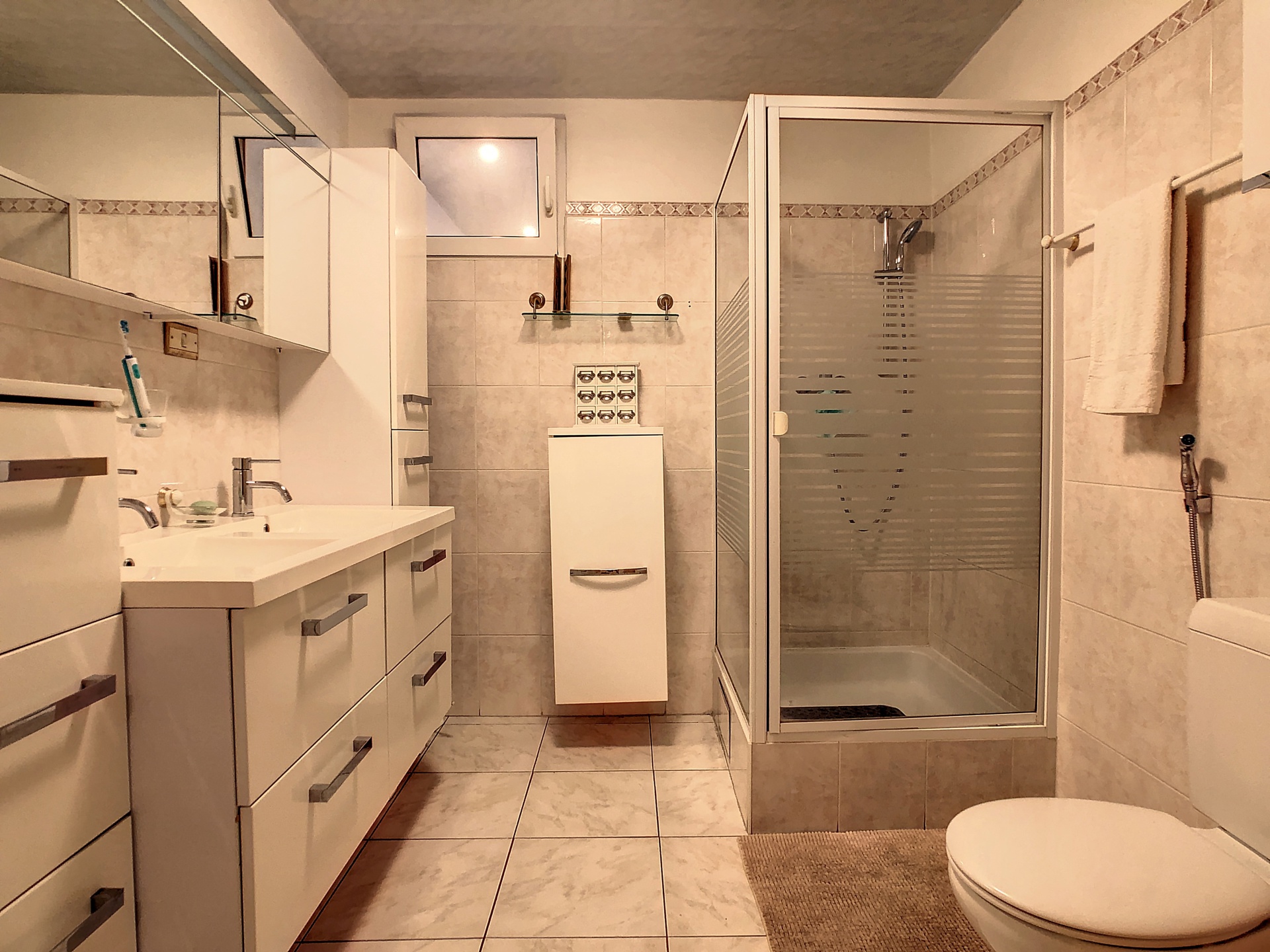 De plus, une grande cave aménagée de +- 45m2, offrant de multiples possibilités, accompagne ce bien. Celle-ci donne accès à la cour de +-9m2.