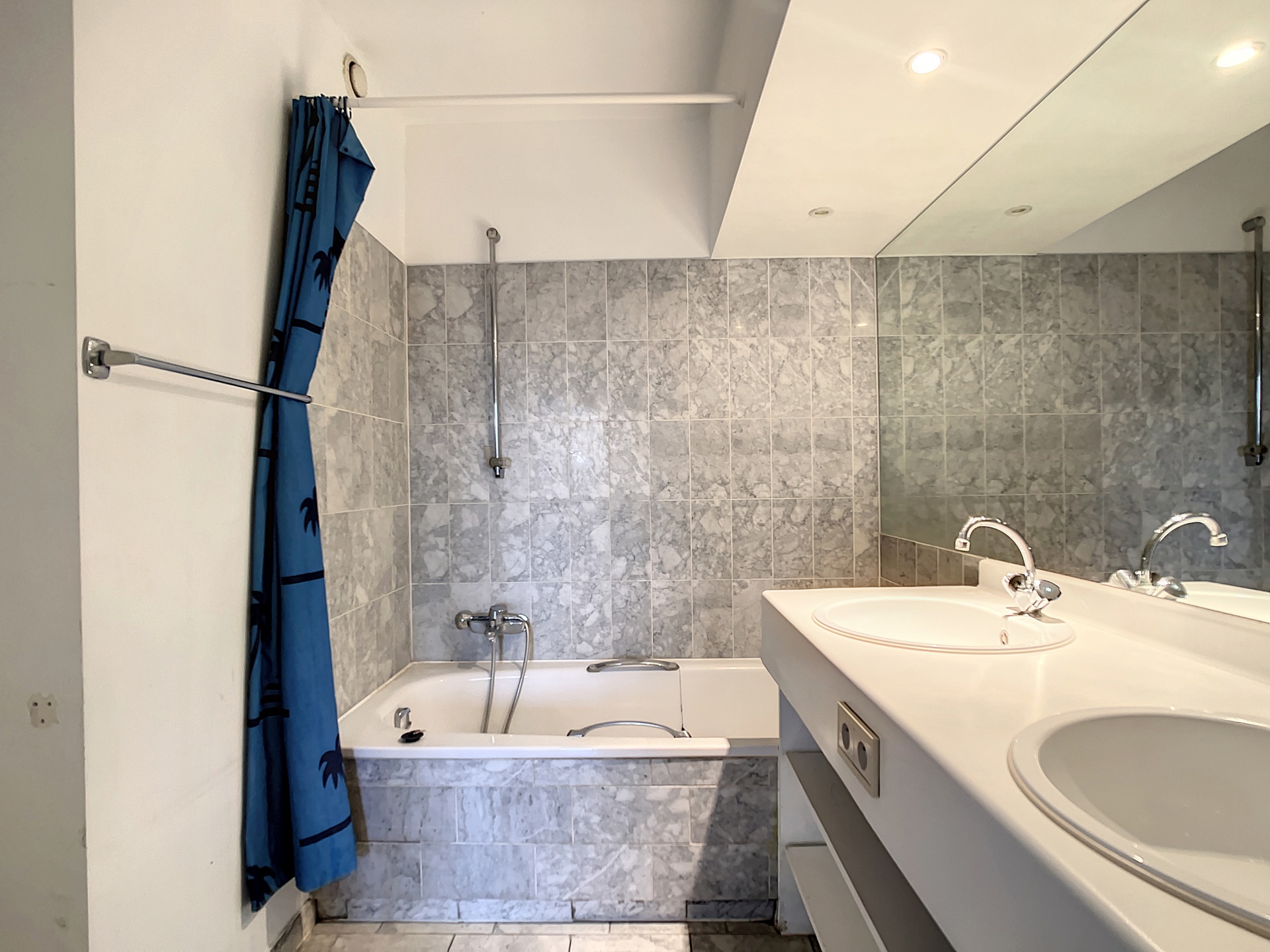 Il dispose également d'une cuisine de +-6m2, trois chambres de +-18m2, +-9m2 et +-8,5m2 ainsi qu'une salle de bain de +-5m2 et un WC séparé.