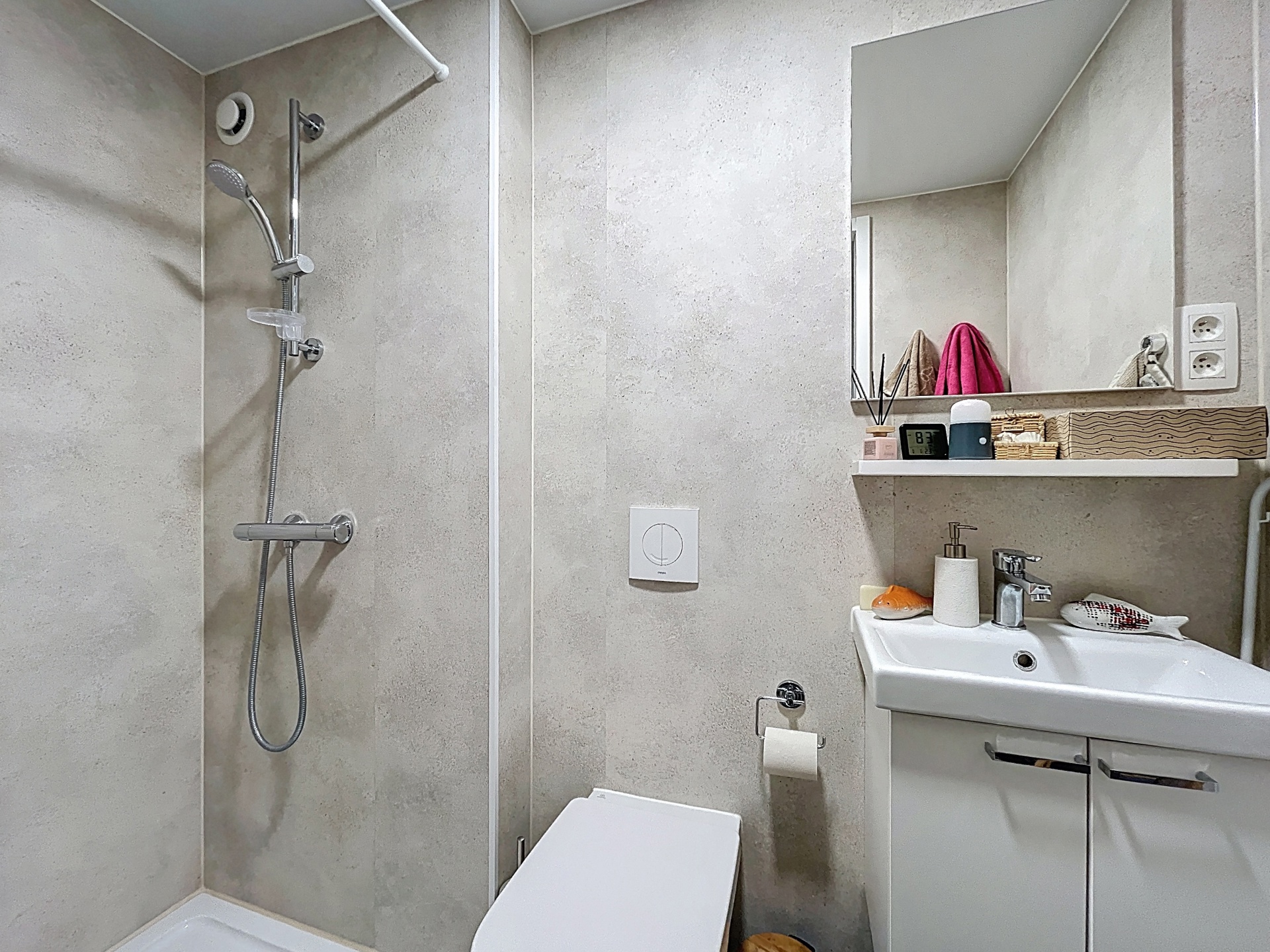 - Salle de bain privative avec douche, WC et lavabo
