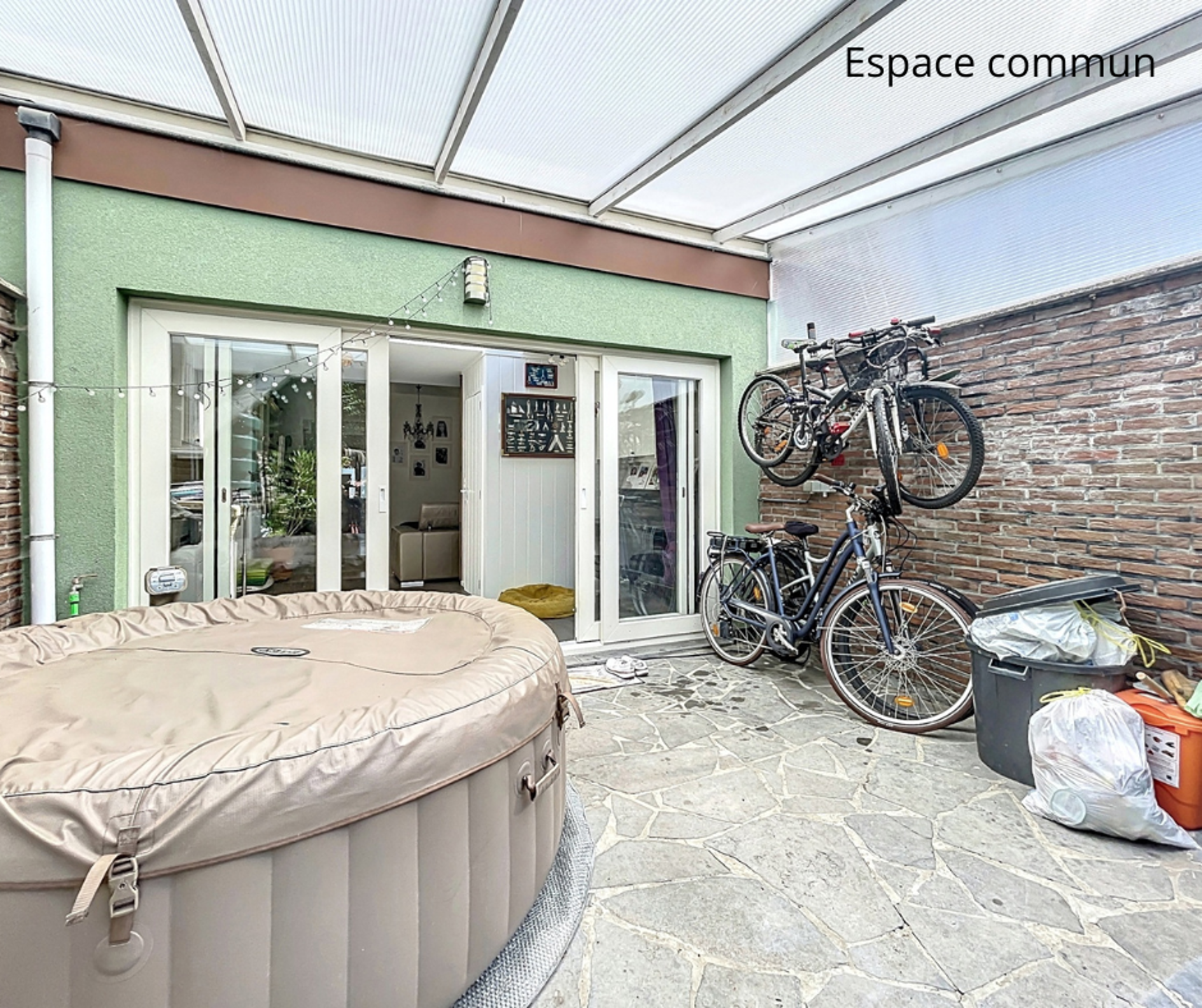 Gemeenschappelijke ruimtes: woonkamer, keuken, buitenruimte met tuin en terras!