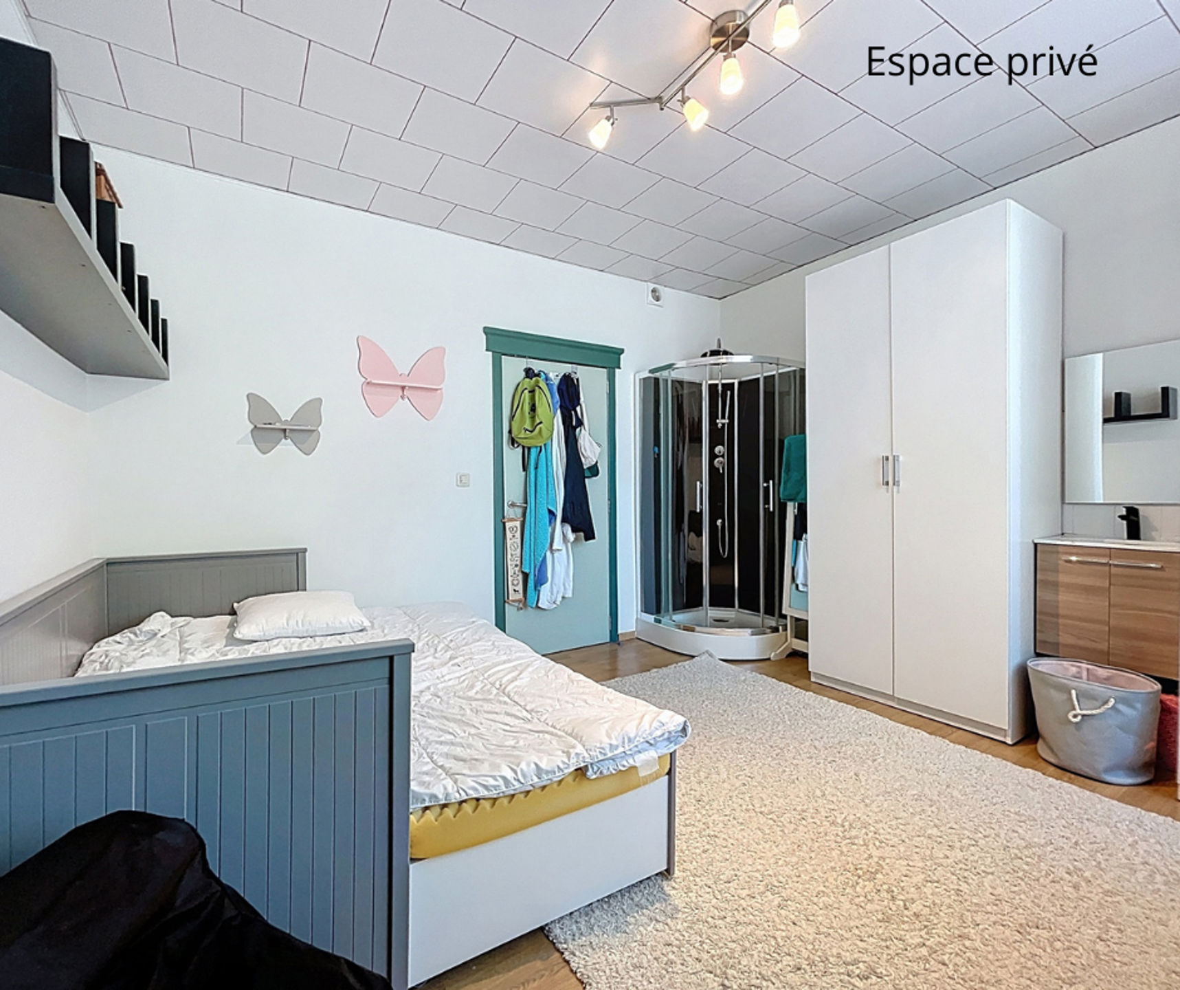 Hij bestaat uit Een eigen slaapkamer met douche en apart toilet.