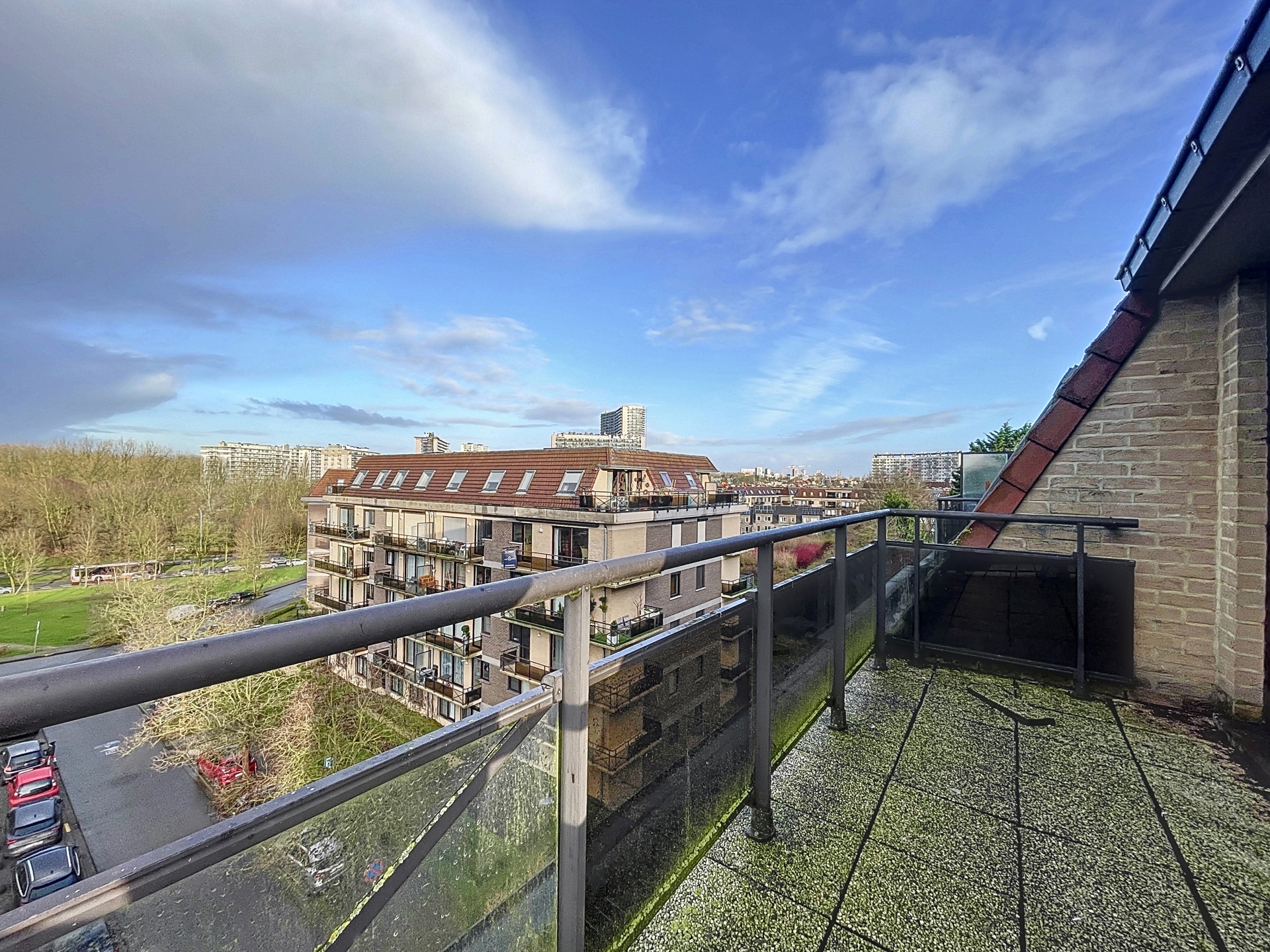 Gelegen op de 5e en bovenste verdieping van een condominium, bieden wij te koop aan deze twee-slaapkamer flat met kantoor + terras met een bewoonbare oppervlakte van +-77m2.