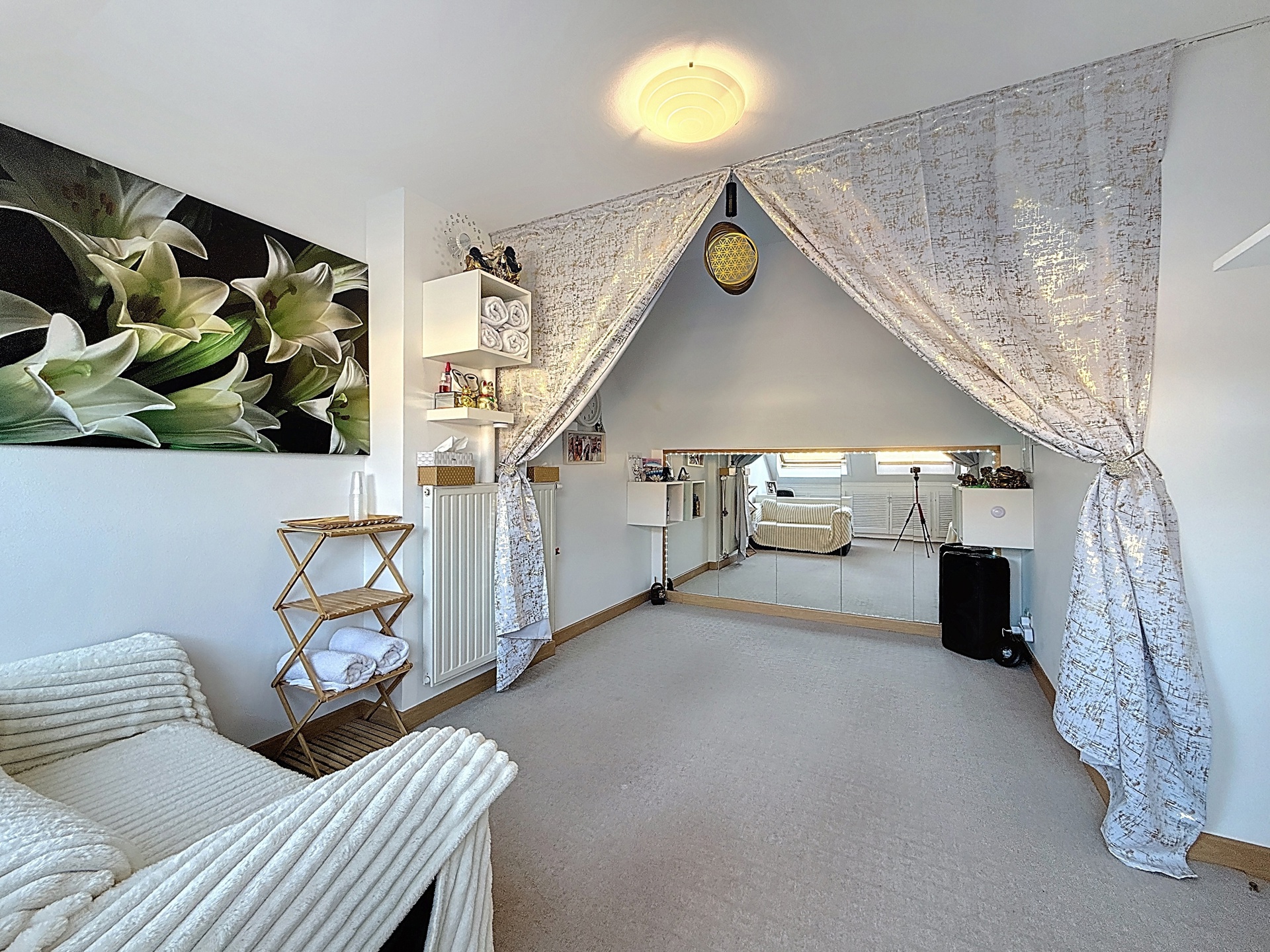 Op de tweede verdieping bevindt zich een nachthal met wasruimte die leidt naar de derde slaapkamer van +-18 m² en de tweede badkamer met toilet.