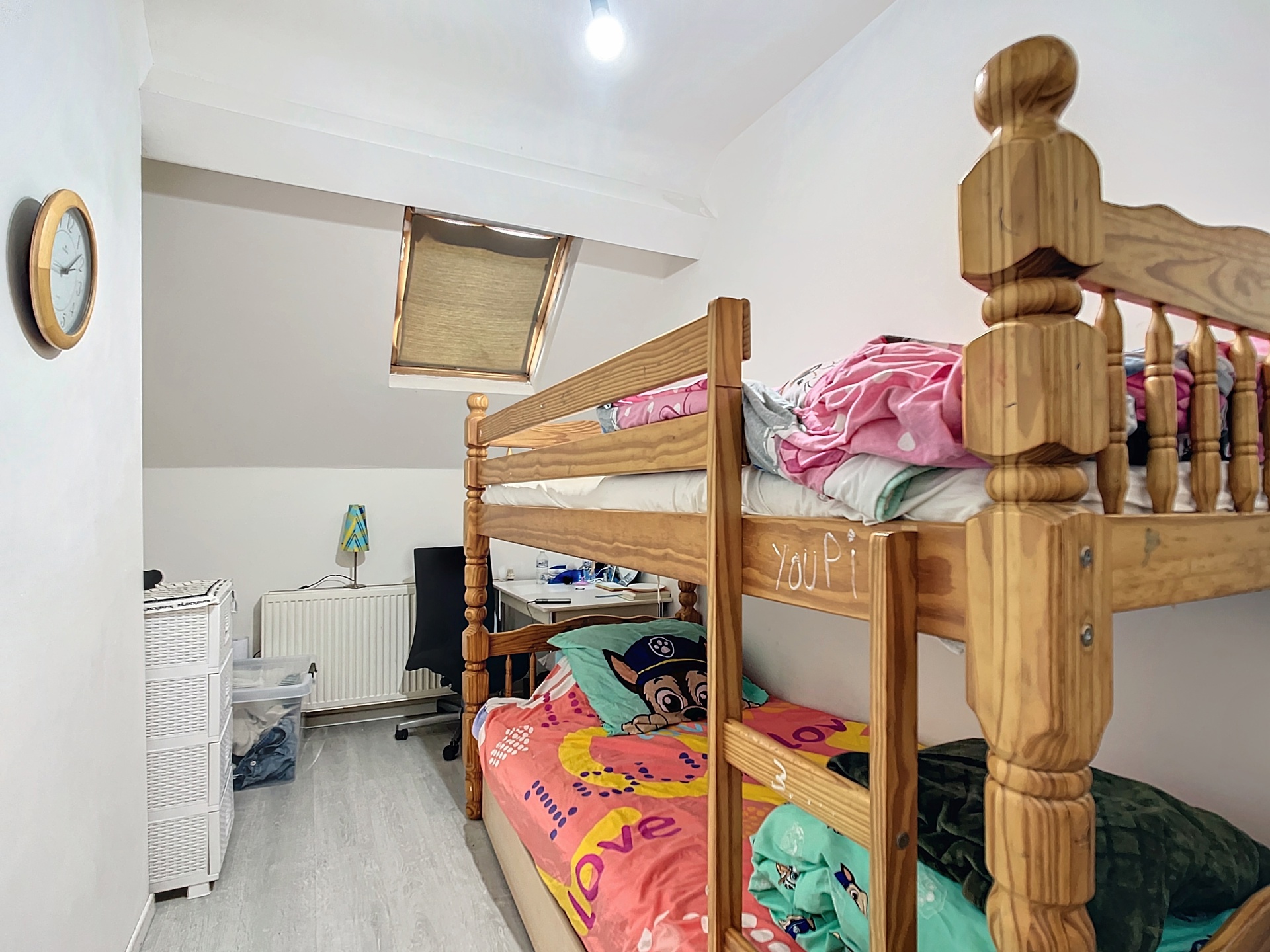Boven vindt u ook drie slaapkamers van 10,5m2, 10m2 en 9m2.