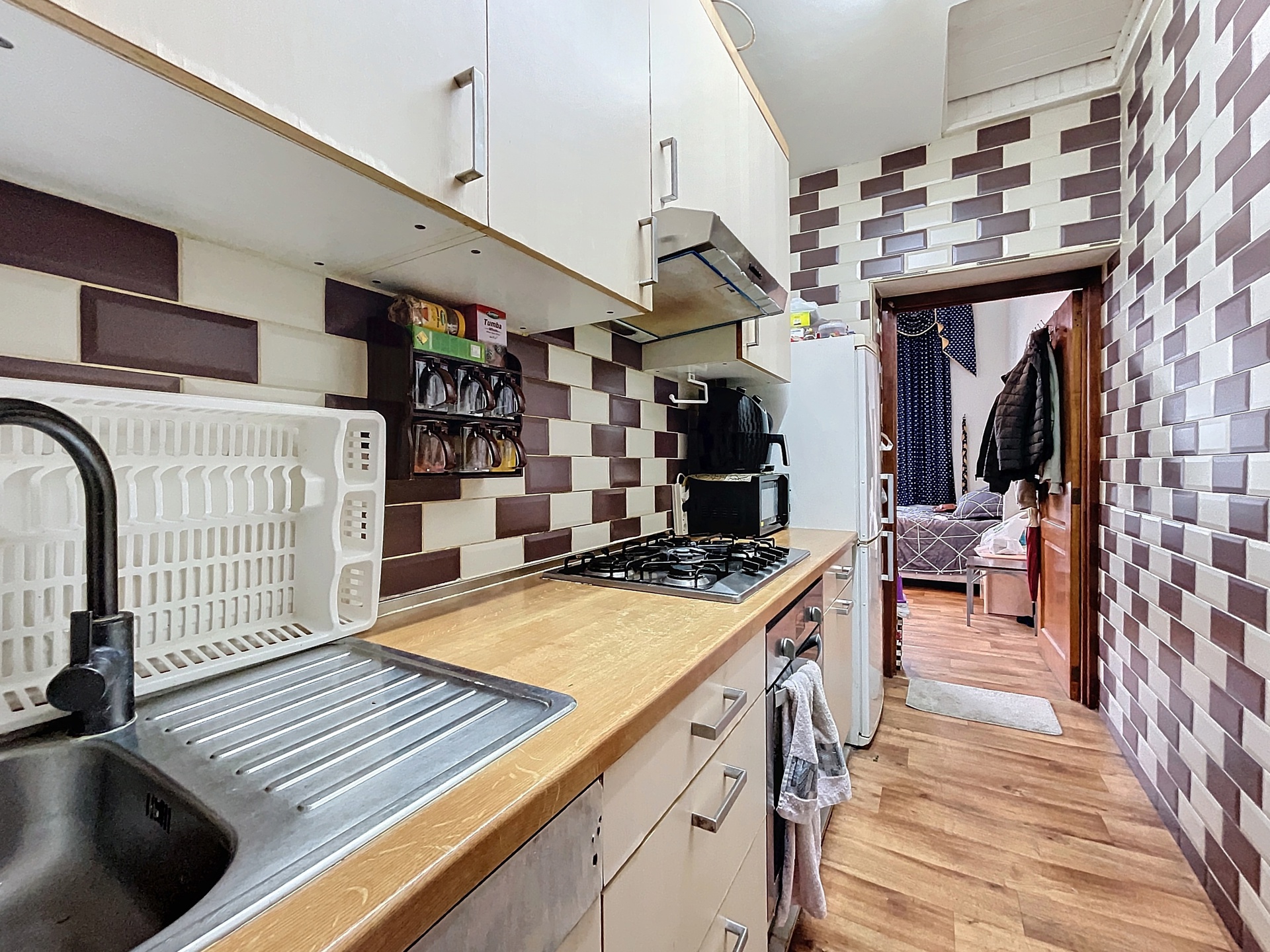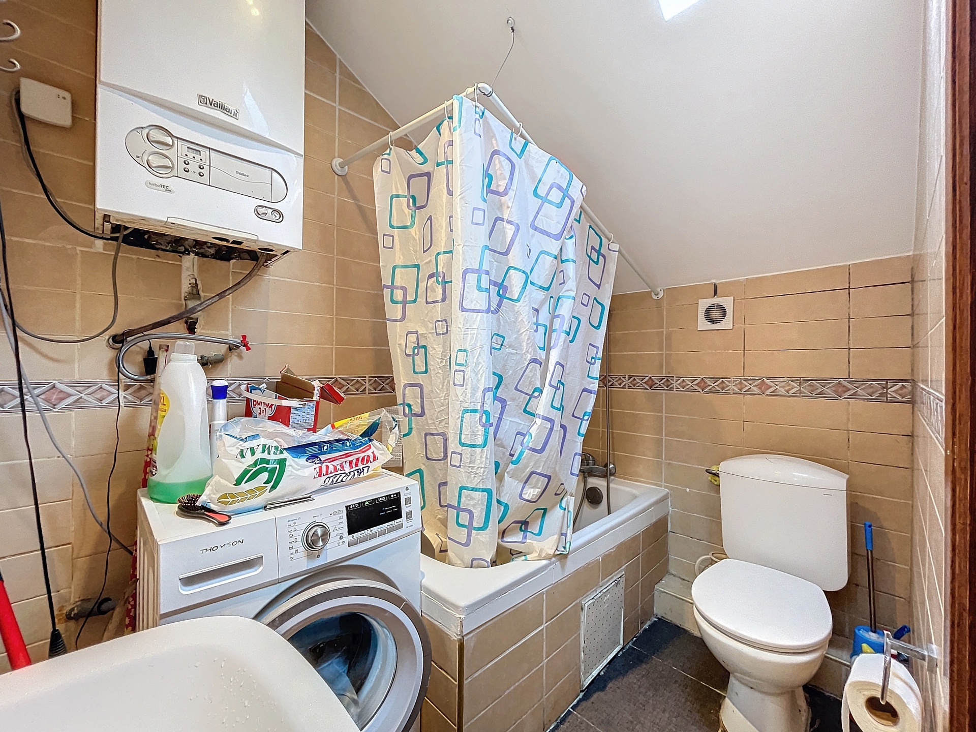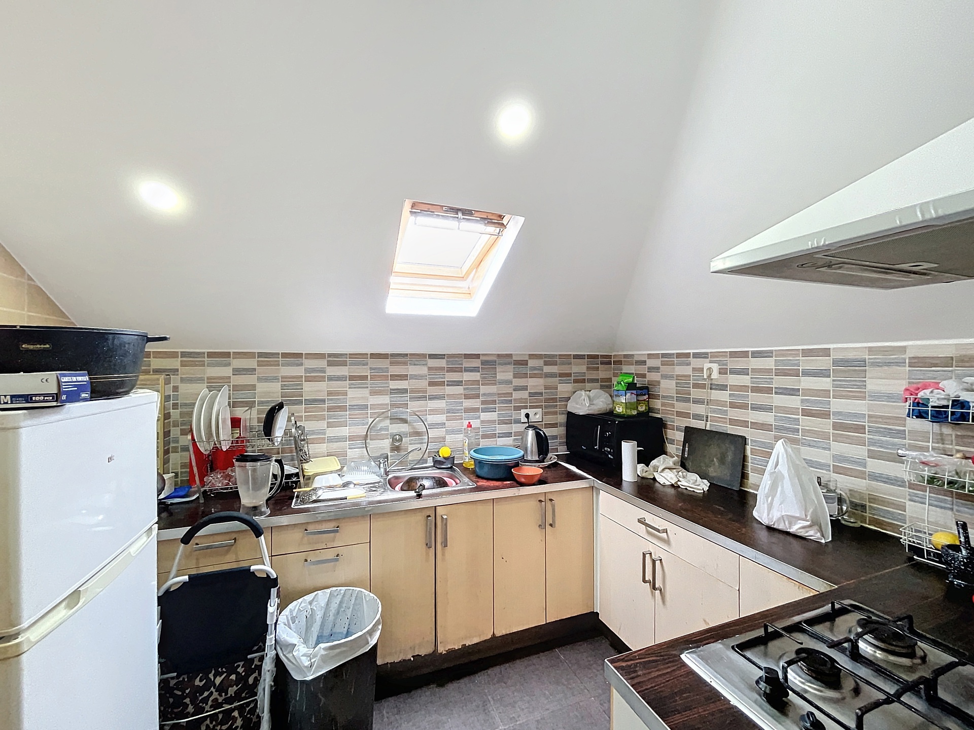 Op de tweede verdieping vind je een appartement met een woonkamer van 23m2 en een slaapkamer van 16m2. Als je nog een paar treden verder loopt, heb je toegang tot de keuken van +-8m2 en een doucheruimte van +-3m2 met toilet.