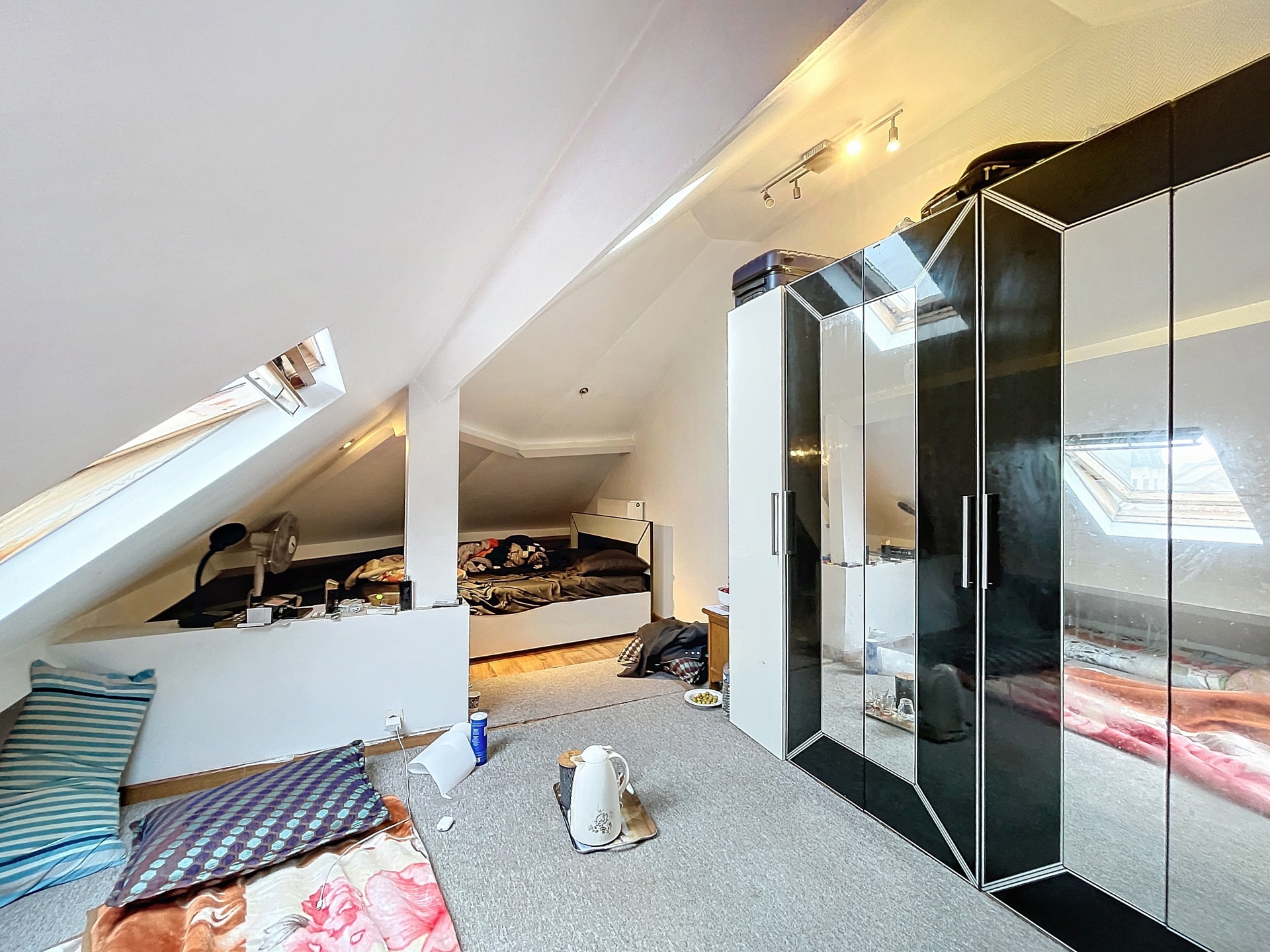 Op de derde verdieping vind je een appartement bestaande uit: een woonkamer van +-23m2. Tussen de verdiepingen heb je toegang tot een keuken van +-8m2 en een badkamer van +-4m2 met toilet. Een slaapkamer van 16m2 op zolder.