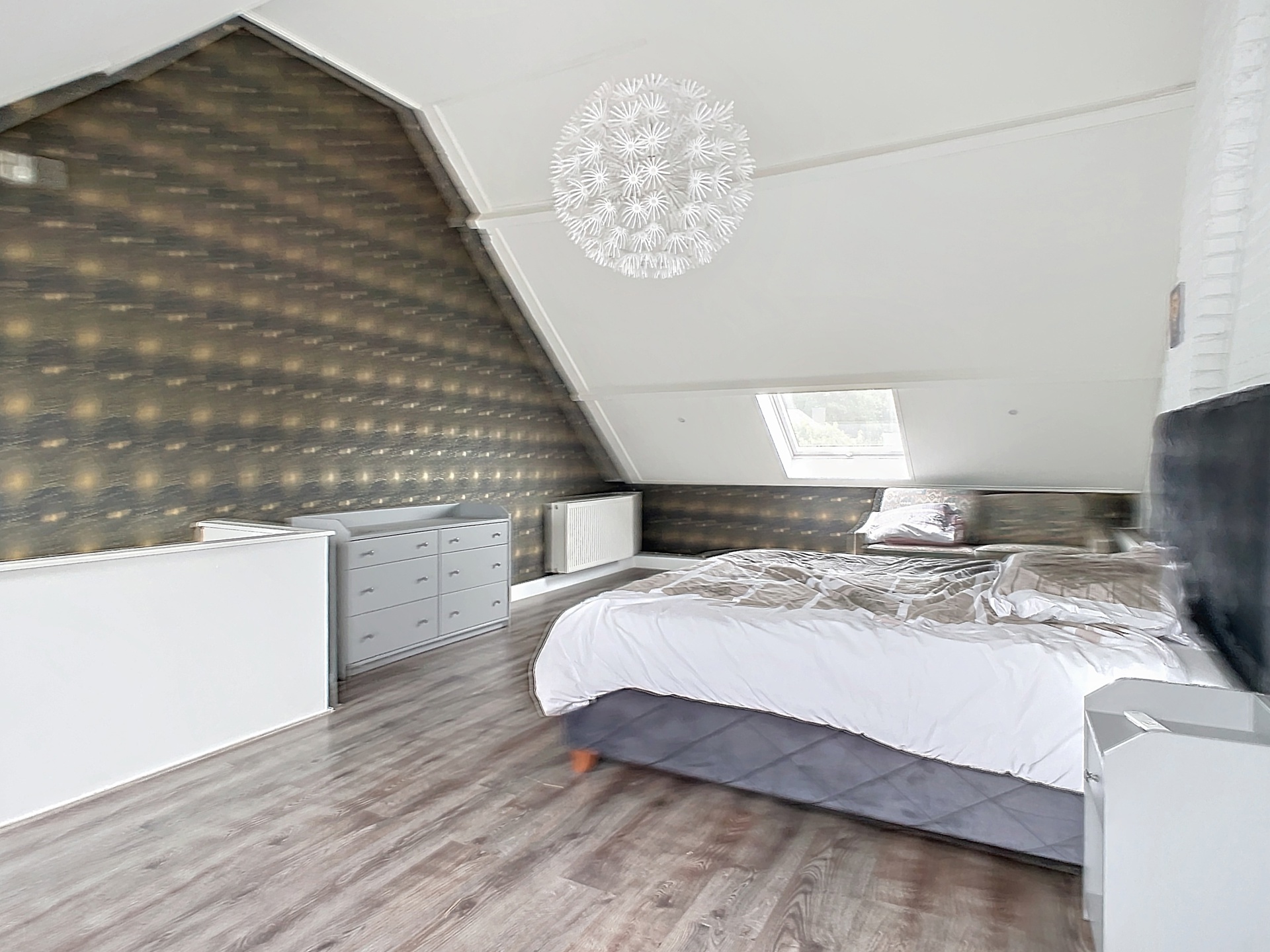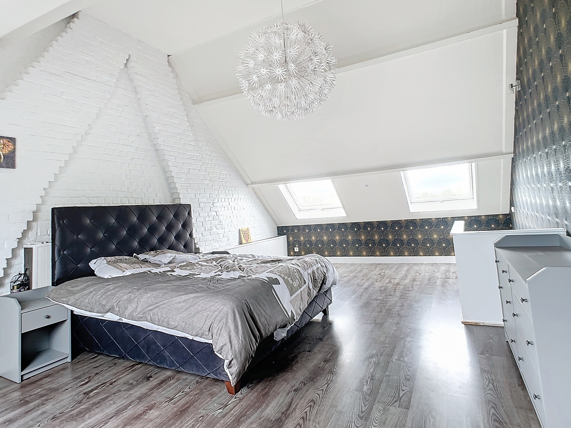 Op de bovenste verdieping, op de verbouwde zolder, vind je de derde slaapkamer van +-35m2.